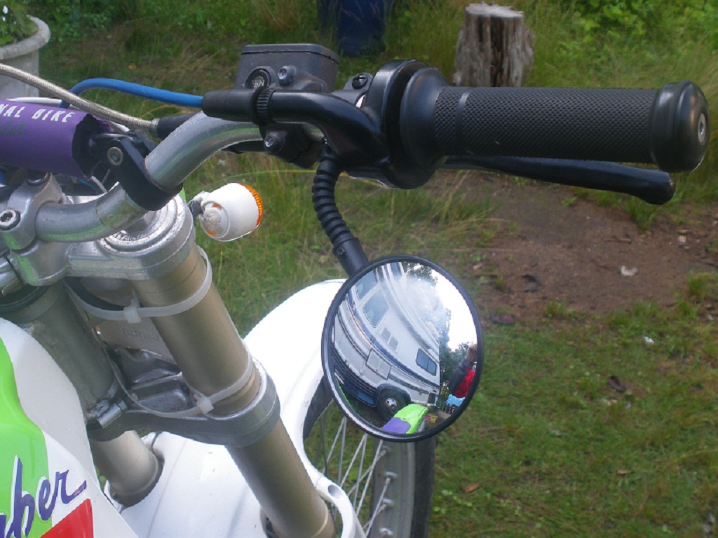 トライアルミラーを廻転させたらステーが割れてしまったので、急遽新しいミラーを付けたでござる。
