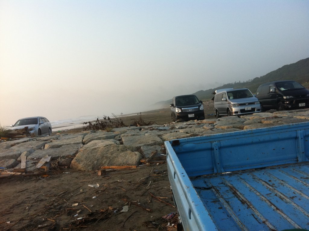 何もない浜なのに、車が、数台止まっていますね。