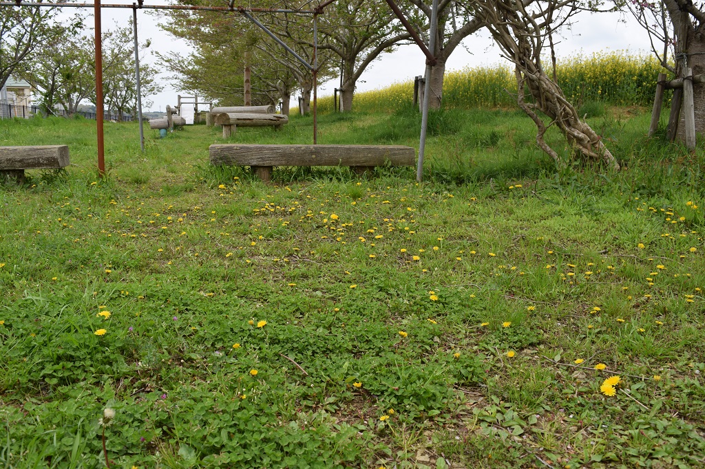 この公園の蒲公英の萼は垂れていません。